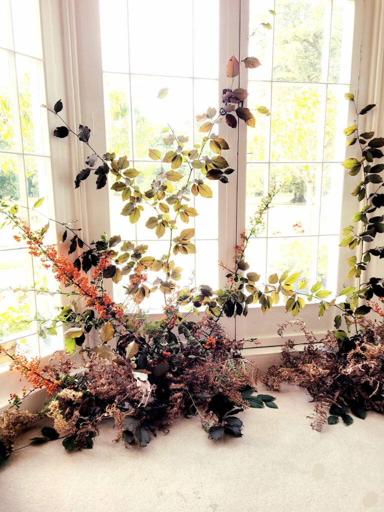 Full design wedding package: Bespoke florals, table, linen and candle styling, Large ceremony or reception installation, statement arrangements for entrance and buffet or bar, Centerpieces, personal flowers for the wedding party, with styling details throughout.