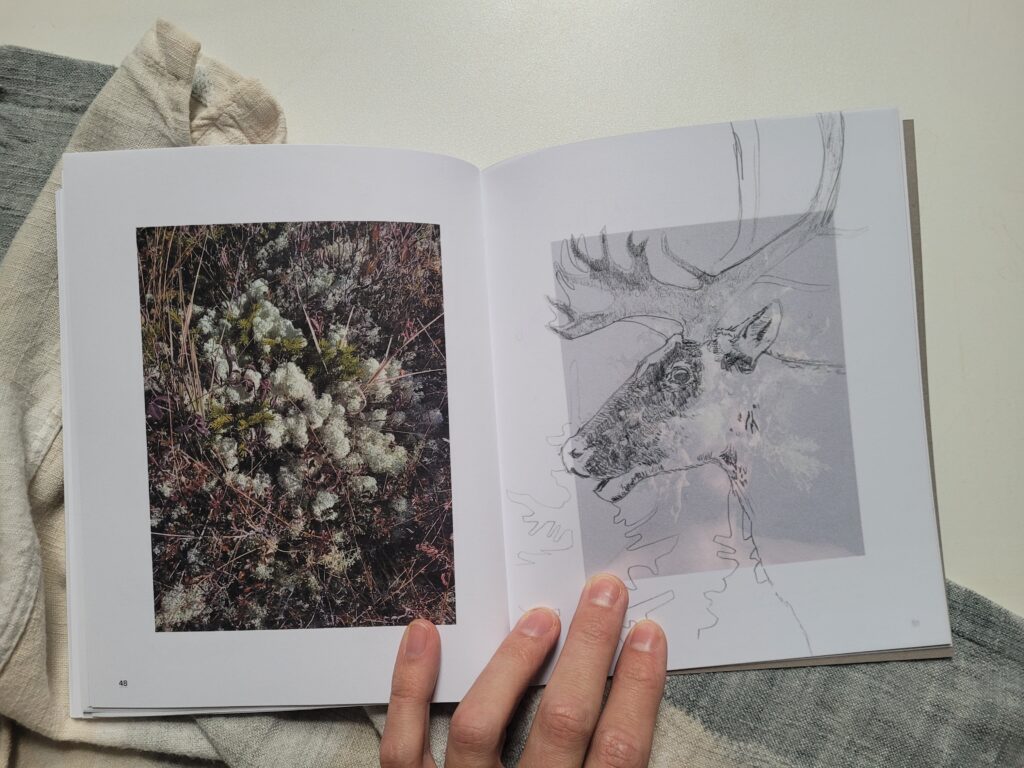 If you follow me on Instagram @reubenmarkstewart you might have saw recent posts about a book launch. I wanted to share more about this project here. This book collaboration stemmed from a desire to explore other art practices outside of flora or outside of plants and flowers in the normal ways I explore and express with them. On October 23rd we launched our art book, Tracing a Caribou. This was a collaboration with artists Janice Wright Cheney and asinnajaq. The book was designed by Erin Goodine.